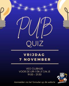 Alle korfballers van U19-1 en J1 t/m J5 opgelet! Jullie zijn uitgenodigd om deel te nemen aan onze pubquiz, in