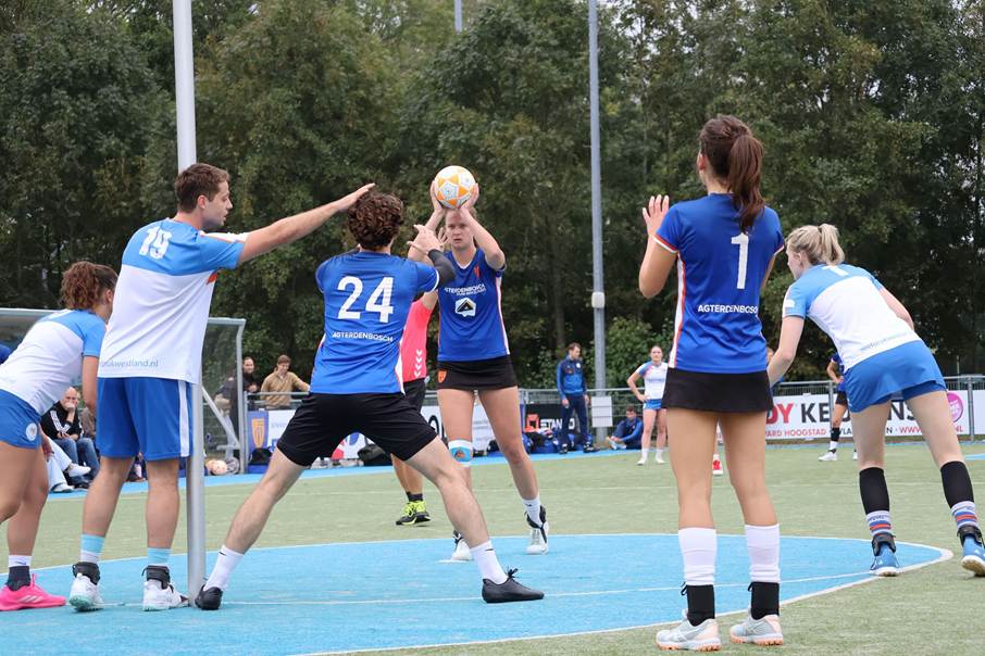 Lekker dus dat Thom direct na rust de 7-5 binnenschoot met een afstandsschot. Nodig ook, want Meervogels gaf zich niet gewonnen en kwam via twee aanvallen alweer op 7-7. Eigenlijk zagen we in de tweede helft hetzelfde spelbeeld als voor rust: kansen over en weer, met telkens kleine verschillen. Vanuit 7-7 liep VEO via strafworpen van Karin en Thom uit naar 9-7, maar even later was het alweer 9-9. Op 12-10 kwam VEO opnieuw twee voor, waarna Meervogels het verschil weer dichtte: 12-12.